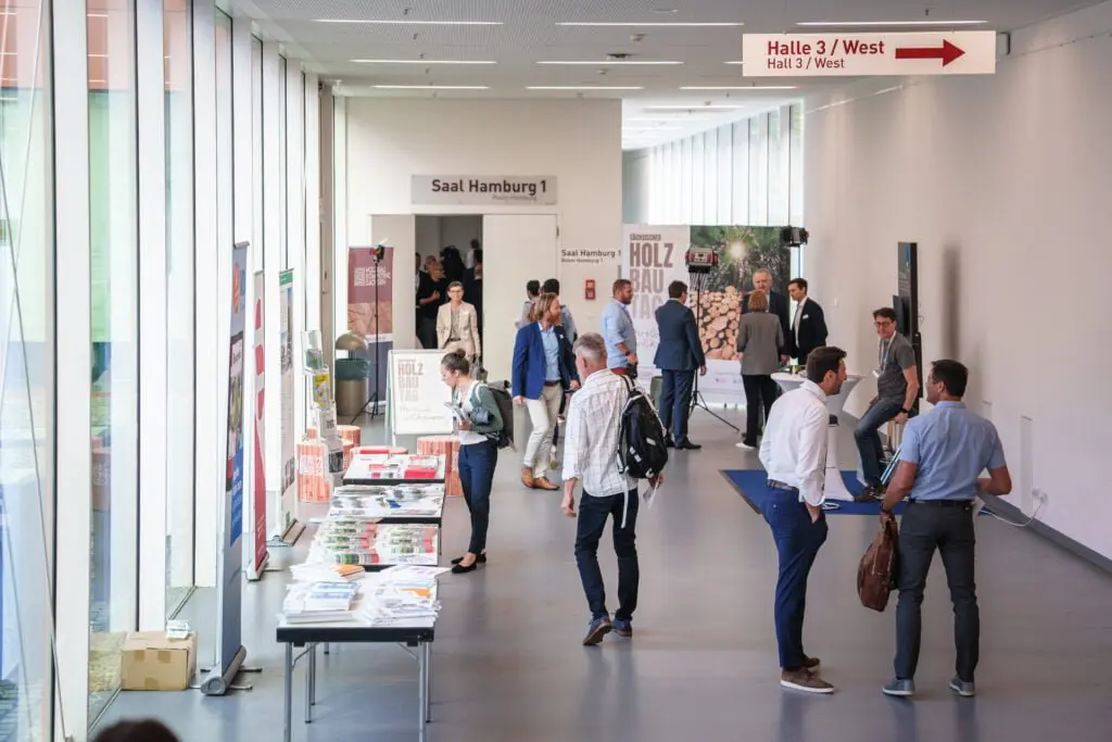 Begleitet wurde die Veranstaltung von zahlreichen Ausstellern, die das Potenzial und die Vielseitigkeit des Holzbaus demonstrierten. Der moderne Holzbau eröffnet für die Baubranche im Freistaat Sachsen neue Wege für das nachhaltige Bauen. Dabei kann der Freistaat Sachsen auf die Erfahrung von über 800 Zimmereiunternehmen bauen, welche auf eine lange Holzbautradition zurückblicken. 29 Prozent der sächsischen Landesfläche sind Wald, in dem täglich die Holzmenge für 200 Einfamilienhäuser nachwächst. Jedes vierte Einfamilienhaus wird bereits aus Holz gebaut und auch mehrgeschossige Häuser sollen immer häufiger mit dem nachwachsenden Rohstoff errichtet werden.