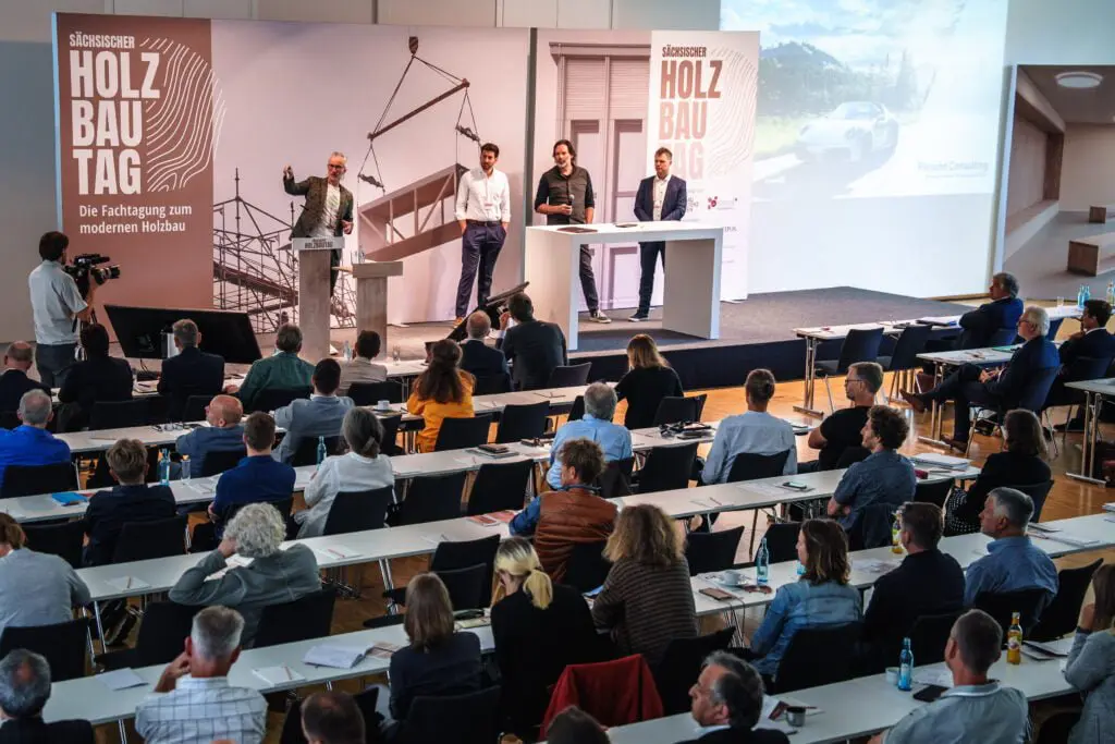 Der 1. Sächsische Holzbautag war ein gelungener Auftakt und hob den Holzbau als nachhaltige und zukunftsfähige Bauweise hervor. Die Veranstaltung zog private und öffentliche Bauherren, Architekten, Ingenieure, Wissenschaftler, Bauunternehmer und viele weitere Interessierte an, die die Gelegenheit nutzten, ihr Wissen zu erweitern und sich mit führenden Fachleuten der Branche zu vernetzen.
